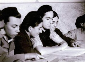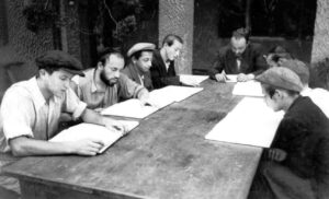Yeshiva boys Holocaust survivors learning Gemara in the Foehrenwald DP camp