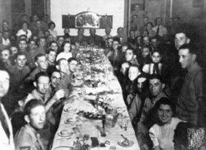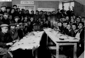 Three hundred young men and yeshiva students sat together at this seder. The women and girls also sat at the foot of the hall and participated in this seder.