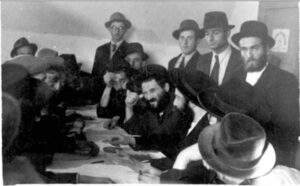 "On Shabbat Chazon, the most serious Shabbat of the year, a day of soul-searching, which was a heavy summer day, the charedi (ultra-Orthodox) survivors gathered in barrack number three. Few in number, there in the corner stood the survivors, what remained of yeshivas, shtieblach (small synagogues), rabbis, and mesivta (yeshiva for high school age students). Their steps were uncertain, their heads still bowed. For so many years they had been subjected to beatings, kicks, oppression and humiliation – without being able to respond. Here, the remnants of the spirit of Judaism of old gathered to contemplate and say Kaddish in memory of the most beautiful and exalted on earth, in memory of Polish Jewry. Not a Kaddish of ordinary words, but a Kaddish of actions, the kind that leads to reviving the Jewish splendour of yesteryear. A Kaddish in the world, that will say that charedi Judaism is alive, that there are brave young people who feel the power to restore its former glory, a Kaddish of a life far from the filth and decay that foreignness in general and haters in particular have instilled in the Jewish camp. They experienced all the trials in the world; until now they were isolated, stood in a corner, no one understood them. Now they are gathering from all the camps, and the news is starting to flow: 'A yeshiva has been created under the direction of C. L. Lubinsky,' 'A kosher kitchen is being established,' etc. Applause is heard. In any case, Jews are happy! A Jewish heart beats within them! The historical process, which unfolds as a cycle for the Jewish People, declines and rises. Young men are preparing for a new life. And the women? We also join in: the voice of the Bais Yaakov teacher is heard! We live and want to live a pure Jewish life, in the meantime we are counting on a little, but with the spiritual strength of young charedi women, who express Jewish unity and call here in this camp to work with a common goal, to elevate the morality and standards of Jewish youth in general!"