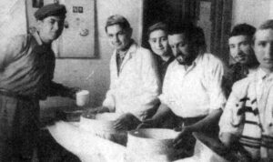 Young survivors in the Santa Cesarea DP camp in Italy baking matzah, guided by Rabbi Leibel Kutner