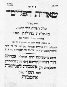 The opening page of the "Siddur Shearit HaPleita" (Survivors' Prayerbook) that was printed in the DP camp in Landsberg, Germany