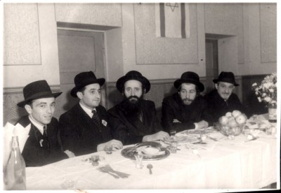 Rabbi Teitelbaum of Satmar, the only representative from Romania, described the situation of Orthodoxy in Transylvania, and told how he and other rabbis moved and were displaced (zich gevalgert) in various camps.