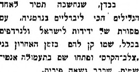 A difficult test, and he withstood it. An even more difficult test was to distract himself from the whole story. He returned home and performed Kiddush with joy, and sang Shabbat melodies with a supreme joy far greater than any other Shabbat.