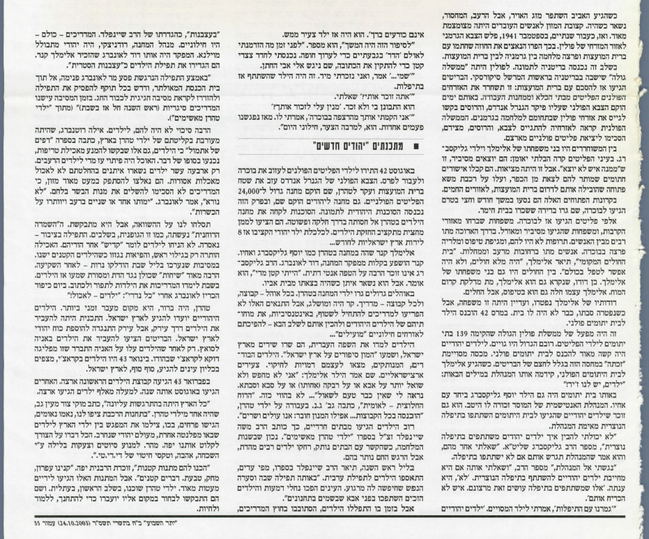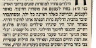 This article does not seek to cover the subject from all sides, but merely to present a collection of testimonies and newspaper clippings that tell the story of these children. The Ganzach Kiddush Hashem archive contains a large repository of testimonies, writings, and books on the subject, and those wishing to delve deeper are invited to peruse them.