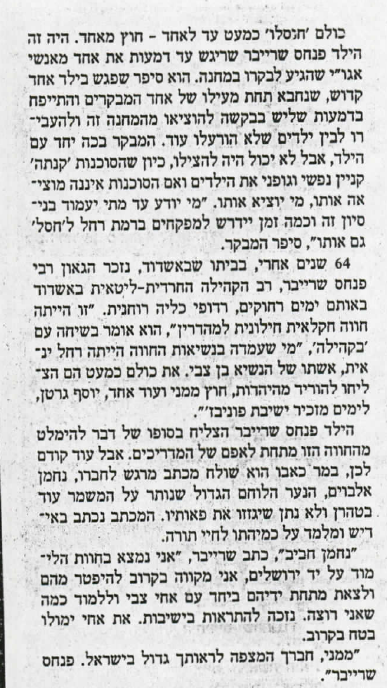On a walk through the streets of Petach Tikva, the children passed by the yeshiva. Fifteen of them burst into it and demanded to be admitted immediately. (Menucha Chevroni, Yated HaShavua 5764/2003-4)