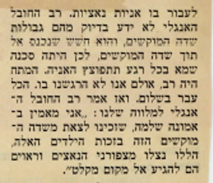 Rabbi Pinchas Schreiber was almost caught in a net, but managed to escape from the farm headed by Rachel Yanait and tried to save his friend as well. (Asher Medina, Kolot 5767/2006-7)